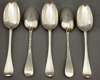 A George I part set of 5 tablespoons,
