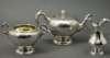 with marks for Edinburgh 1853, maker J McKay, comprising teapot, twin handled sugar bowl and cream jug, each of circular outline, with foliate scroll engraved borders