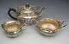 by Walker and Hall, Sheffield 1928, comprising a teapot, cream jug and twin-handled sugar bowl, of squat baluster form, semi-fluted with foliate and bead borders (3)