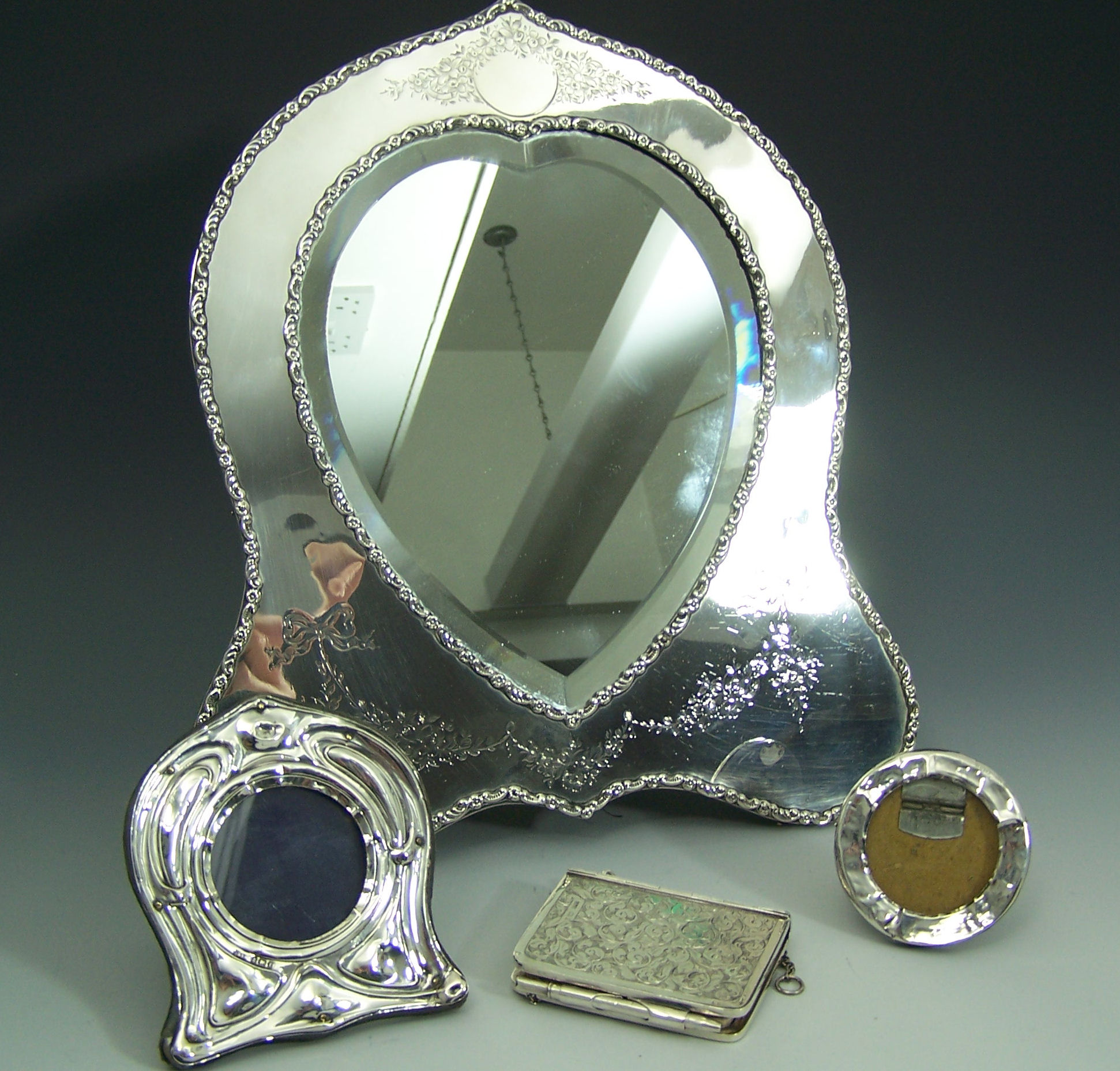 A heart shaped dressing table mirror,