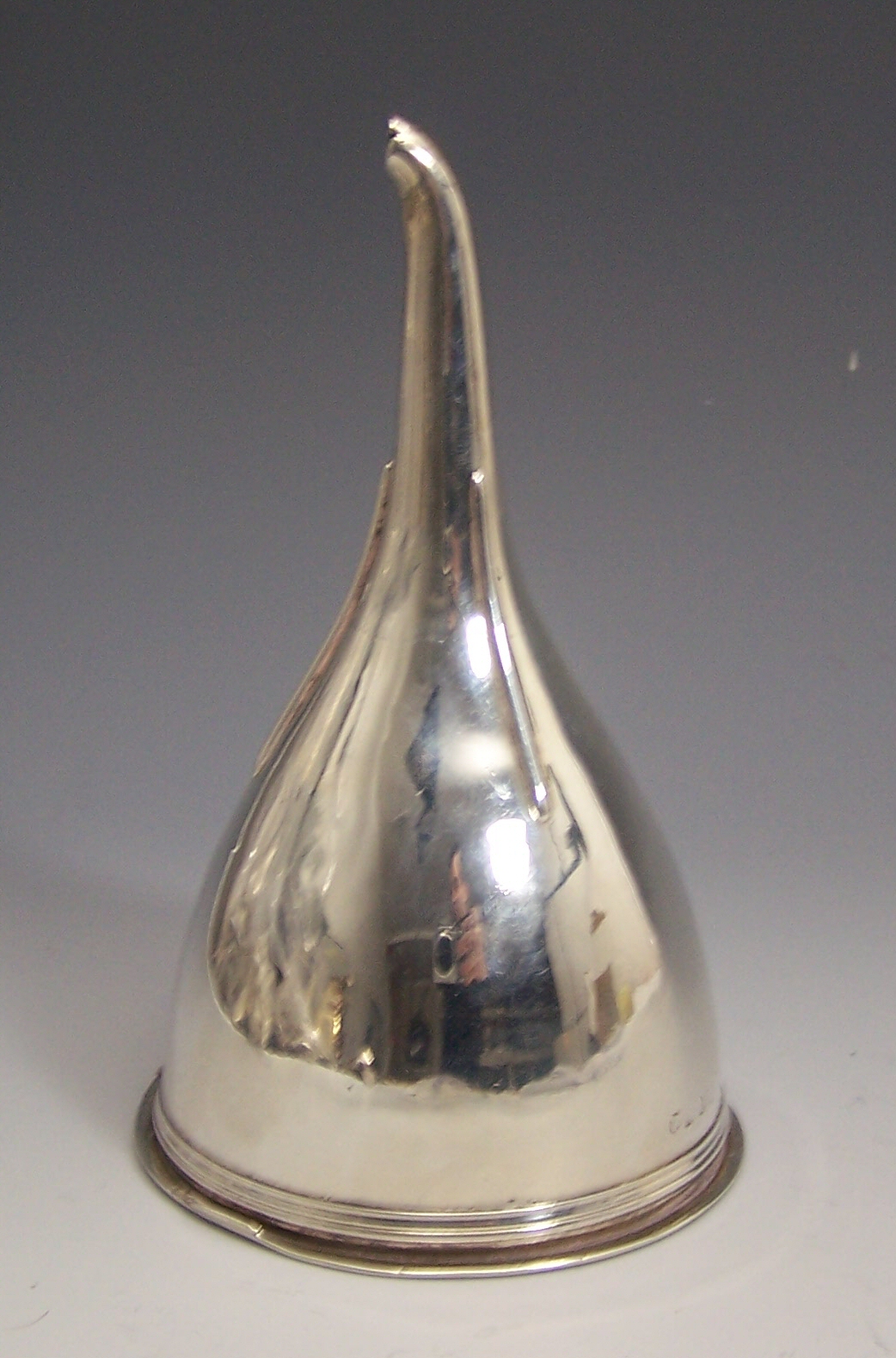 London 1801, maker's mark indistinct, with deep conical bowl, slender tapered curved spout and three strengthening ribs, with pull-out strainer section