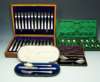 by Fenton Brothers Ltd, Sheffield 1903, with mother of pearl handles, contained in a fitted case; a cased set of twelve coffee spoons, with matching sugar tongs, Sheffield 1903; a cased set of two preserve spoons and a matching knife, fork and spoon, with fitted case (4)