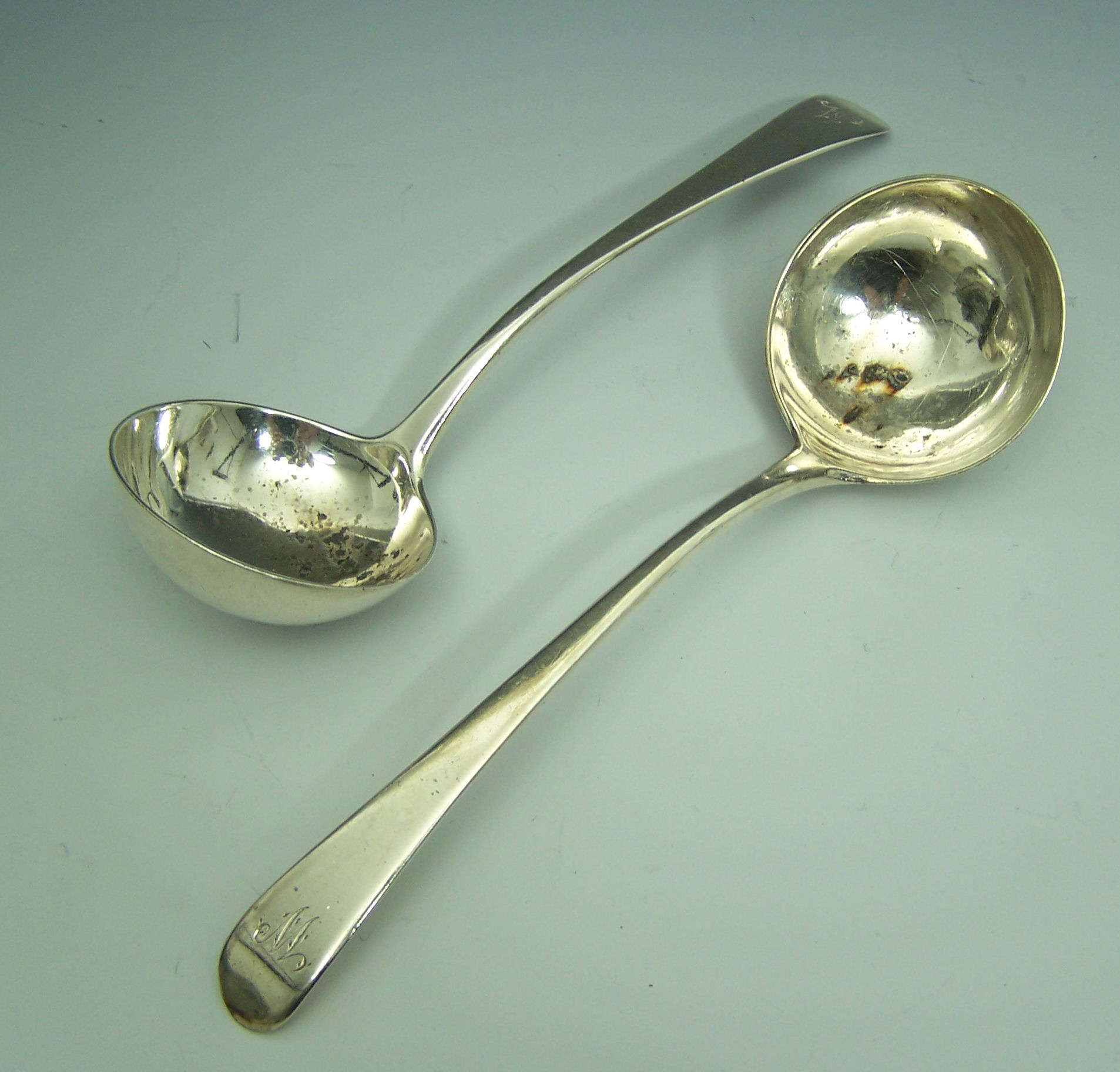 comprising dessert, serving and table spoons; also a small selection of bright engraved teaspoons and a pair of London sauce ladles, various dates and makers (Qty)