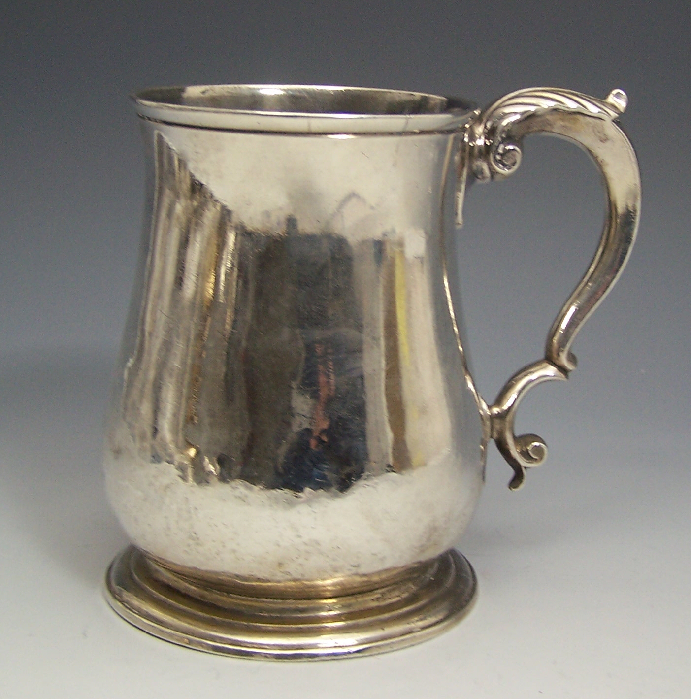 probably by George Greenhill Jones, London 1745, with S-scroll handle with acanthus leaf decoration, on stepped flared foot rim