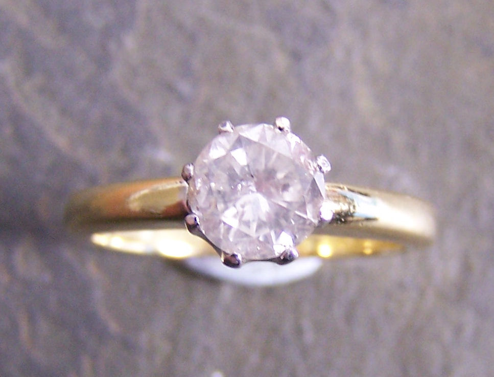 claw set with a round brilliant cut diamond