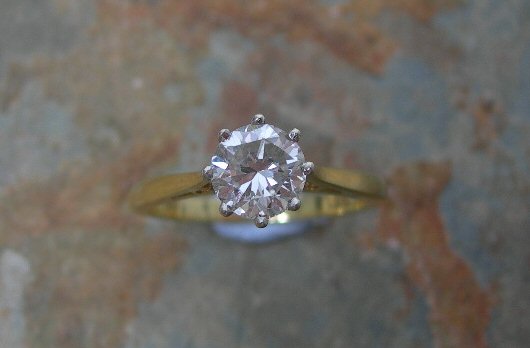 claw set with a round brilliant cut diamond