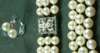 of cross-over design, set with two large pearls flanked by scroll shoulders set with borders of baguette and single cut diamonds, mount stamped 14K; also a three-row pearl necklace, composed of uniform pearls, with rectangular clasp set with three pearls and single cut diamonds, stamped 14K (2)