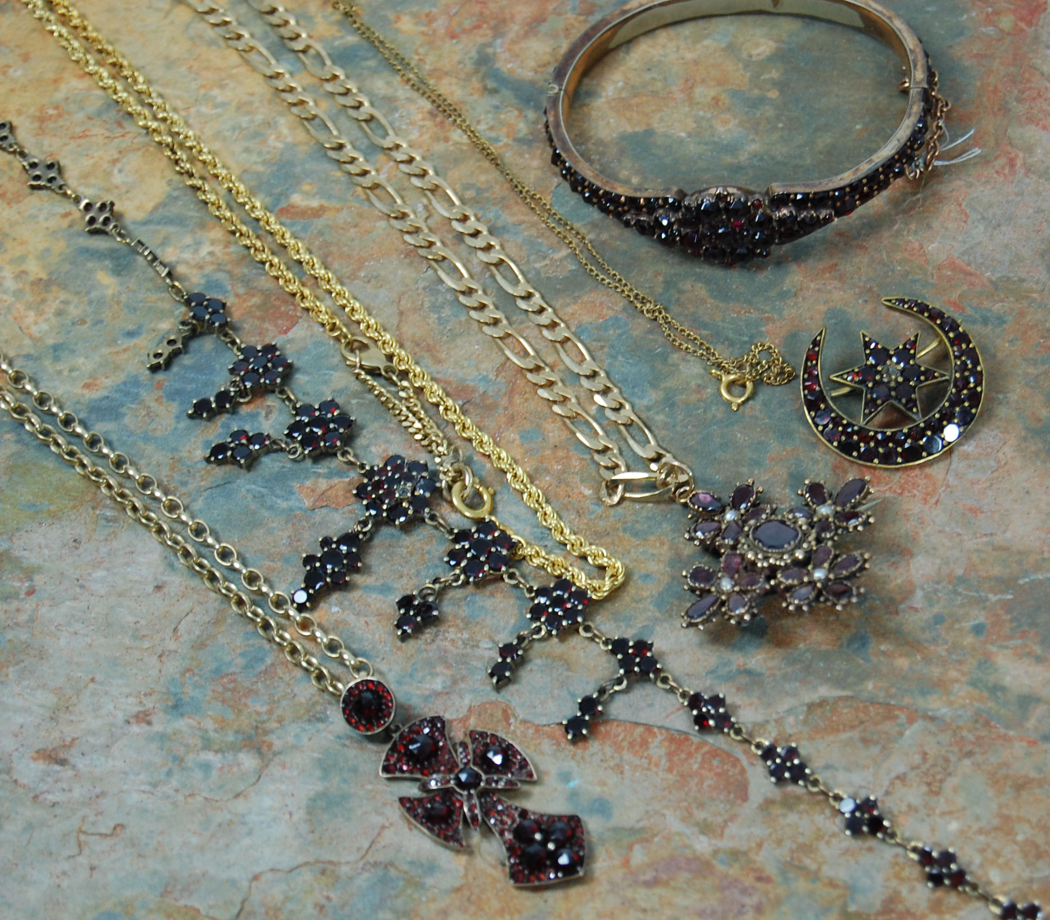 to include a fringed necklace; a hinged bangle; a cross-form pendant; two brooches and other pieces (Qty)