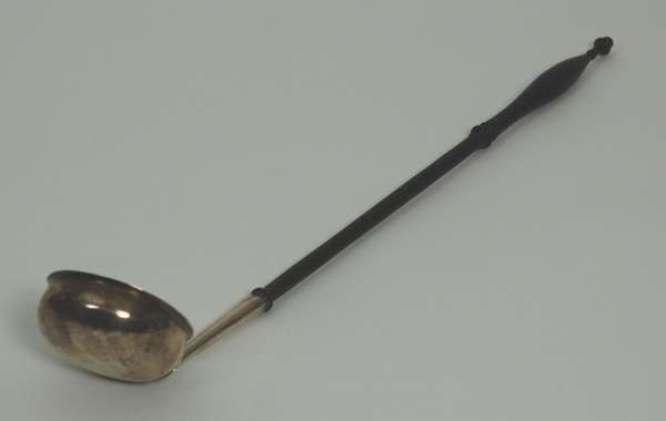 by William & Patrick Cunningham with marks for Edinburgh (probably 1805 but date letter worn), with simple circular bowl and turned wooden handle with acorn finial