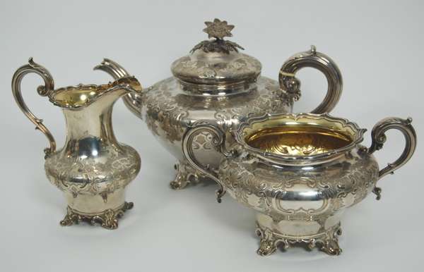 A Victorian silver three piece tea set