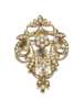of scroll design, with central floral cluster, millegrain collet set with old European cut diamonds within a surround of graduated seed pearls