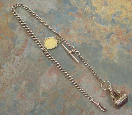 Of Masonic interest - a 9ct gold curb link Albert chain,