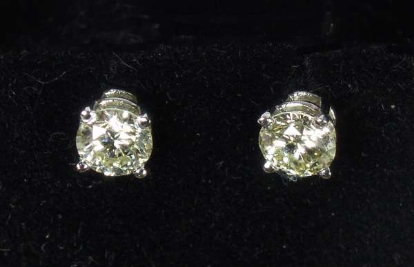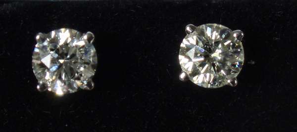 A pair of 18ct yellow gold mounted diamond set earrings,