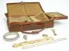 of circular design; a 9ct gold belcher link necklace; a lady's fob watch; a broad fancy link bracelet, stamped 750, DEPOSITA; a foliate engraved silver hinged bangle; a rose quartz cabochon set ring; also a fitted leather jewellery box with outer canvas cover (Qty)