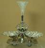 by John Dixon and Son of Sheffield, the engraved rounded rectangular base with two large scallop shells either side of the rising central column with foliate and scroll supports and a cut crystal spill vase