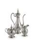 by Tiffany & Co, New York, with London import marks 1920, comprising coffee pot, milk jug and twin handled covered sugar bowl, each with slender baluster bodies chased with Islamic style decoration in geometric navette designs (3)