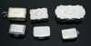 Natahaniel Mills, Birmingham 1825, of rounded rectangular form, engine turned decorated lid, engraved initials, well pierced grill; another similar; a Victorian example, Birmingham 1853, serpentine form engraved cover; three small late 18th century examples with simple pierced grills (6)