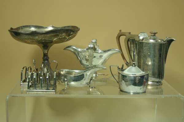 a pair of four division toast racks, cafe au lait set, comport, double lipped sauce boat and stand, another sauce boat and a George III oval mustard pot and cover (9)