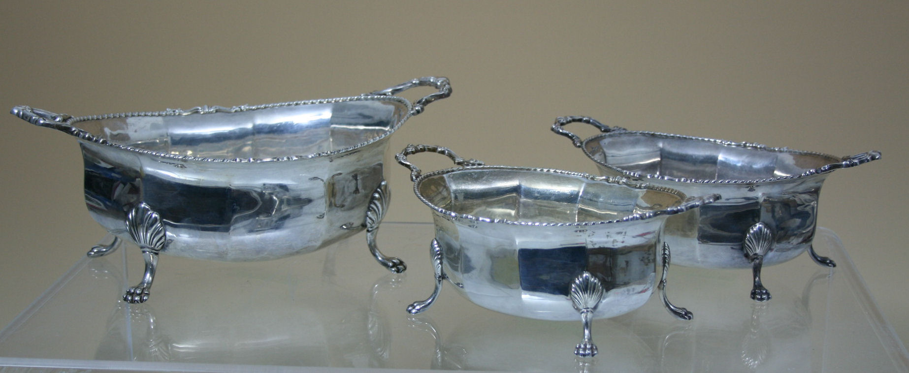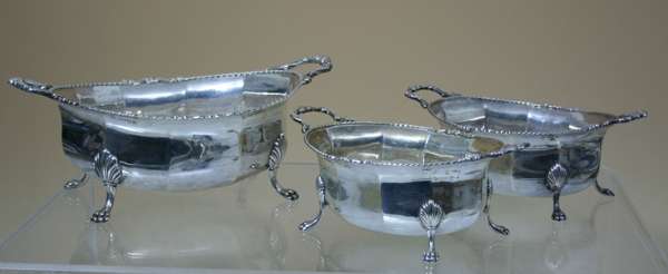 A set of three silver serving bowls