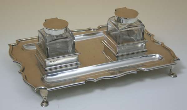 A late Victorian silver table desk stand