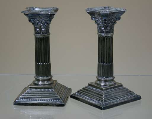 A pair of silver Edwardian dwarf candlesicks,