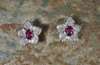each designed as a floral cluster, with central claw set oval cut ruby within a petal shaped surround pave set with single cut diamonds, with post and clip fittings