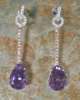 each composed of a line of claw set round brilliant cut diamonds suspending a pear cut amethyst drop, mounts stamped 18K