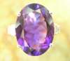 the central claw set large oval cut amethyst, flanked to either side by two graduated baguette cut diamonds