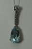 comprising a pair of pendant earrings and a matching pendant, each composed of a line of claw set round brilliant cut diamonds, suspending a fancy pear cut aquamarine drop, the pendant hallmarked 18ct white gold