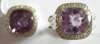 each collet set with a fancy rounded square cut amethyst within a surround of single cut diamonds, mounts stamped 9K (2)
