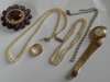 designed as an oval cloral cluster; a 22ct gold wedding band; a lady's gold wrist watch; and three assorted cultured pearl necklaces (6)