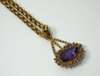 the chain composed of fancy textured circular belcher links, the pendant claw set with a large oval cut amethyst within a bead and wire work surround