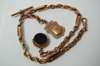 with T-bar suspension, vacant shield shaped fob and hardstone set circular swivel fob