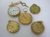 A collection of five assorted open faced pocket watches,