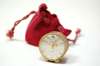 of circular design, with pink leather sides and pink suede pochette; a lady's wrist watch, with hinged bangle stamped 750, the rectangular dial signed MARUXA GENEVE; a decorative fob watch with concealed dial stamped MIRAMAR GENEVE; together with two gilt metal open faced fob watches (5)