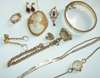with scroll surround; a 9ct gold foliate scroll engraved hinged bangle; a belcher link bracelet, suspending a smoky quartz swivel fob; a Vertex gold wrist watch and other pieces (Qty)