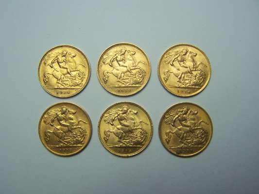 to include 1911F; two 1912 GF; three 1914 VF+ (6)