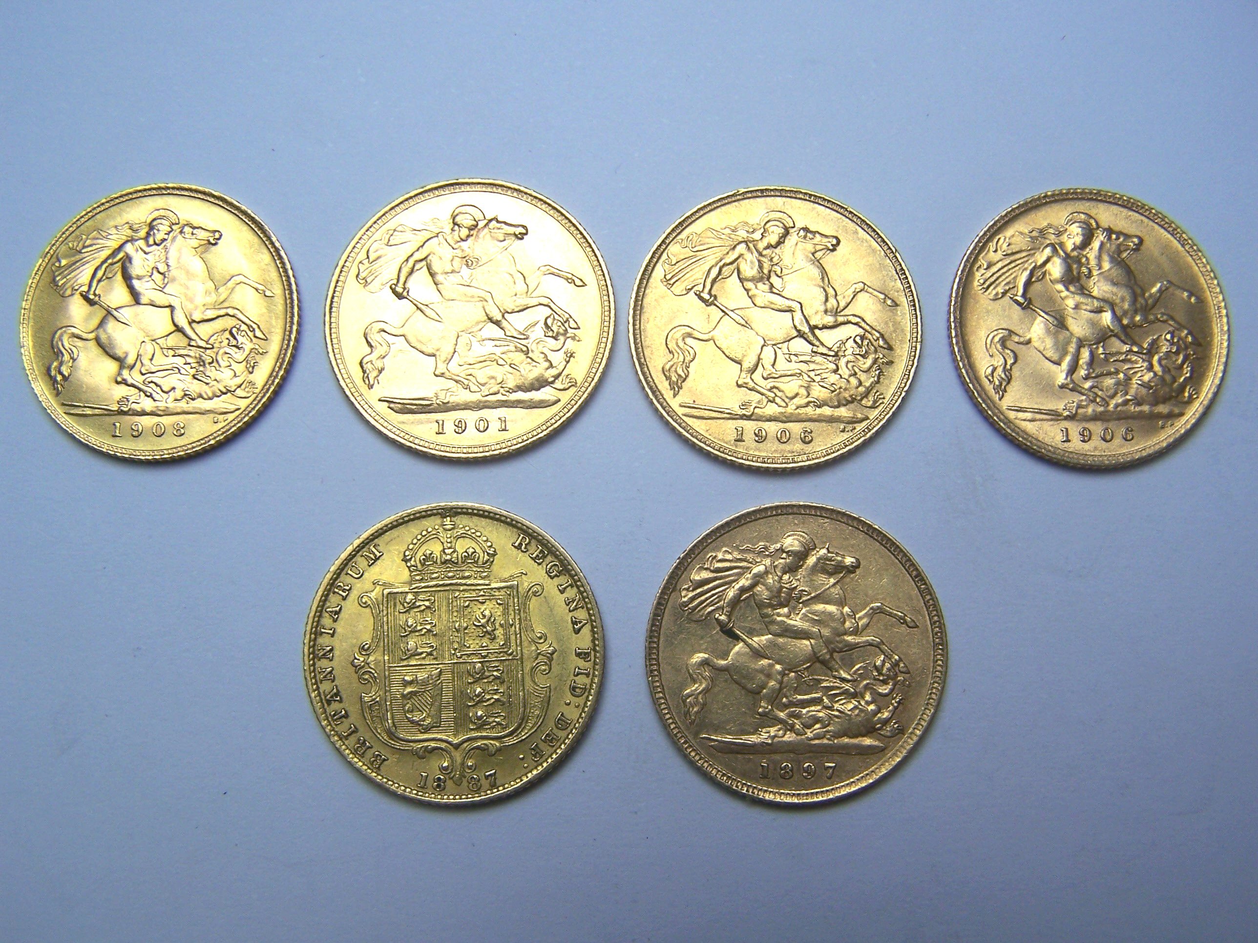 to include 1887 Shield back VF; 1897 F; 1901 EF; two 1906 GVF; 1908 EF (6)