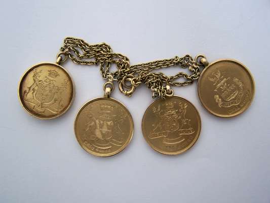 A group of four gold golfing medals; Royal Eastbourne Golf club