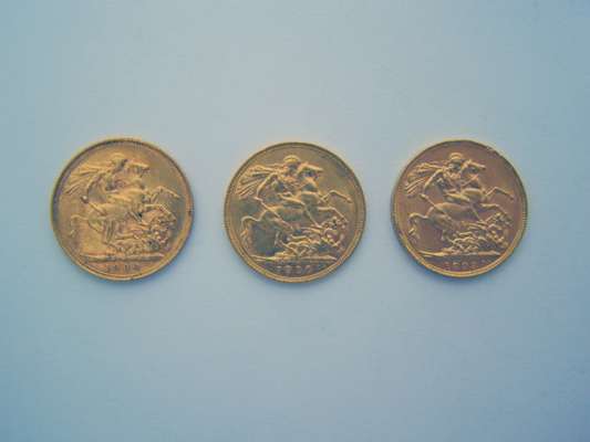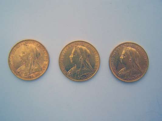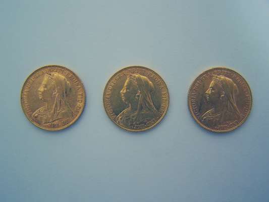 GB Three Old head Victorian sovereigns