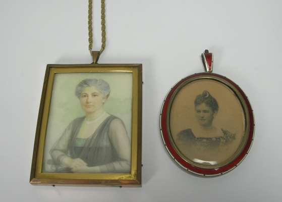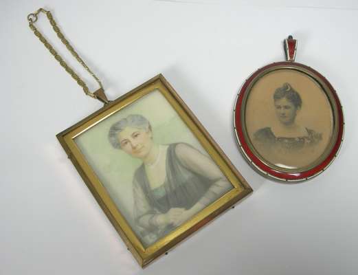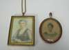 Asprey & Co., London 1913, oval, red and white border, similar bale; together with a miniature on ivory of a seated lady (2)