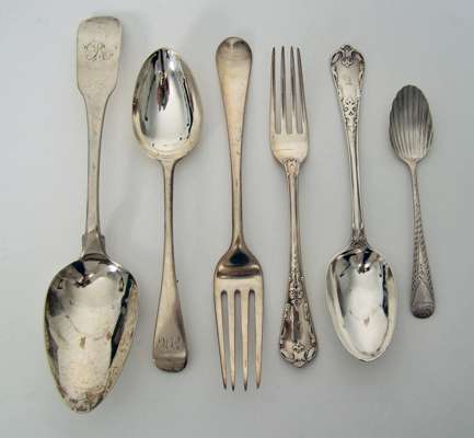various dates and makers, some plain, together with a set of twelve Victorian dessert spoons, private die, four dessert forks and teaspoon, etc