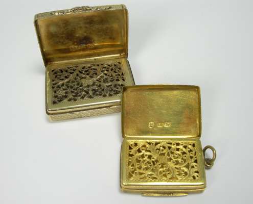 An early Victorian silver-gilt vinaigrette and another similar