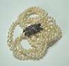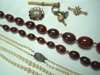 to include an early 19th century garnet and seed pearl set memorial brooch; a bar brooch applied to the centre with a half-pearl and rose cut diamond set star; a turquoise cabochon set propelling pencil; assorted fobs; a graduated amber coloured bead necklace; also a cultured pearl two-row necklace, with marcasite set clasp stamped STERLING SILVER (Qty)
