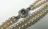 composed of graduated pearls, ranging from 3mm to 4mm diameter, with sapphire and diamond set shaped square clasp