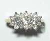 of floral design, claw set with three graduated round brilliant cut diamonds, within a surround of fourteen smaller similarly cut diamonds