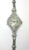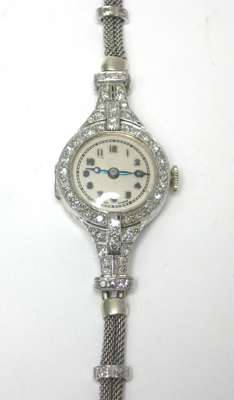 the champagne coloured circular dial with Arabic numerals, with single cut diamond set bezel and shoulders, and foliate scroll engraved sides, fitted to a 9ct white gold cord style bracelet, watch head inscribed to reverse N.M. THORNE 12.3.38