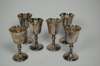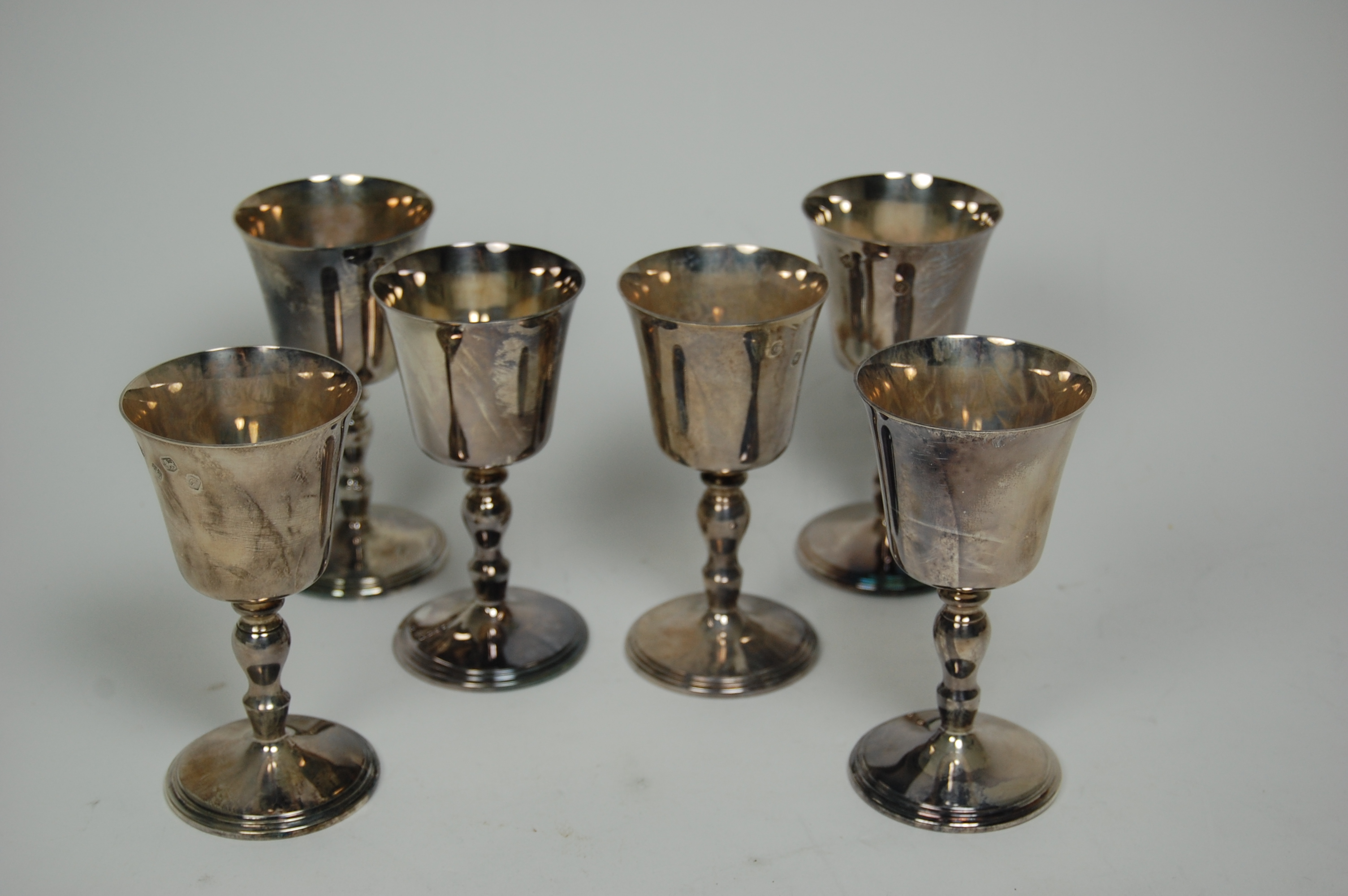 Sheffield 1974 with feature hallmarks to the bell shaped bowls, on simple knopped stem and spreading foot (6)