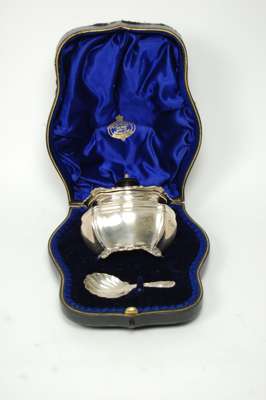 An Edwardian cased tea caddy and caddy spoon
