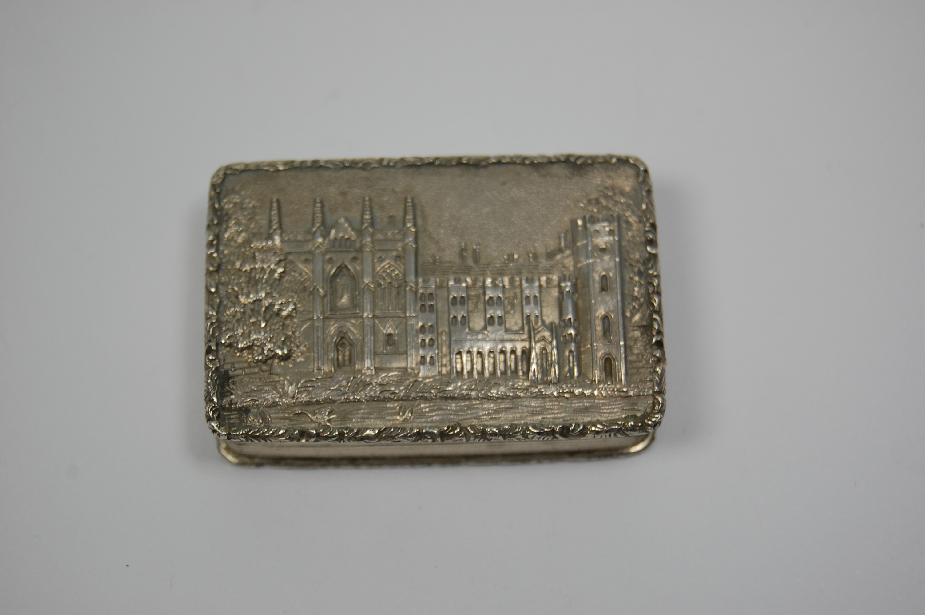 by Natahaniel Mills Birmingham 1838, with low relief of Newstead Abbey to cover, the gilt interior with hinged pierced foliate and scroll grill